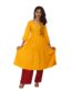 Mango yellow cotton fabric gown with beautiful multi colour embroidery kurti