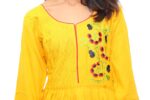 Mango yellow cotton fabric gown with beautiful multi colour embroidery kurti