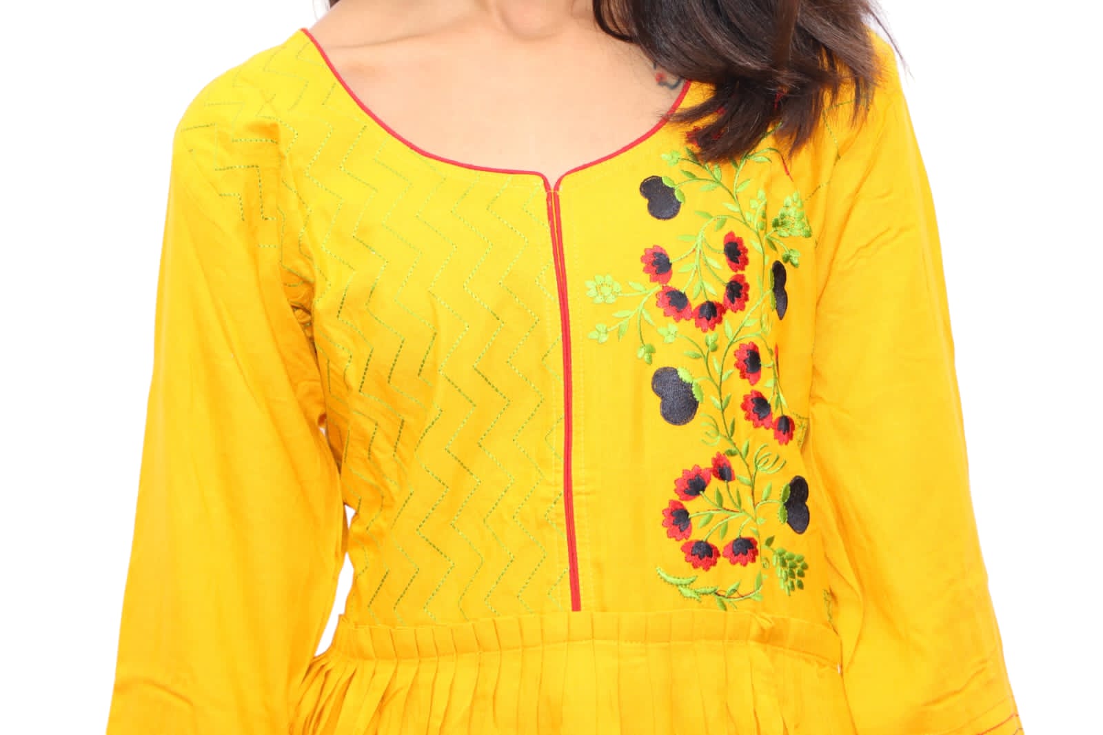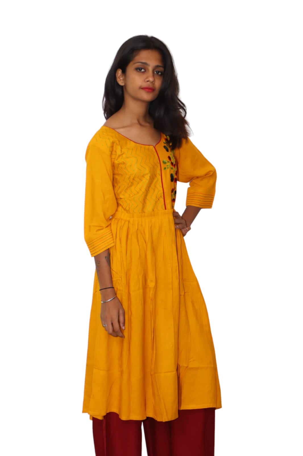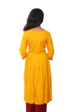 Mango yellow cotton kurti With beautiful red yok embroidery