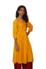 Mustard colour Silk fabric with embroidery kurti